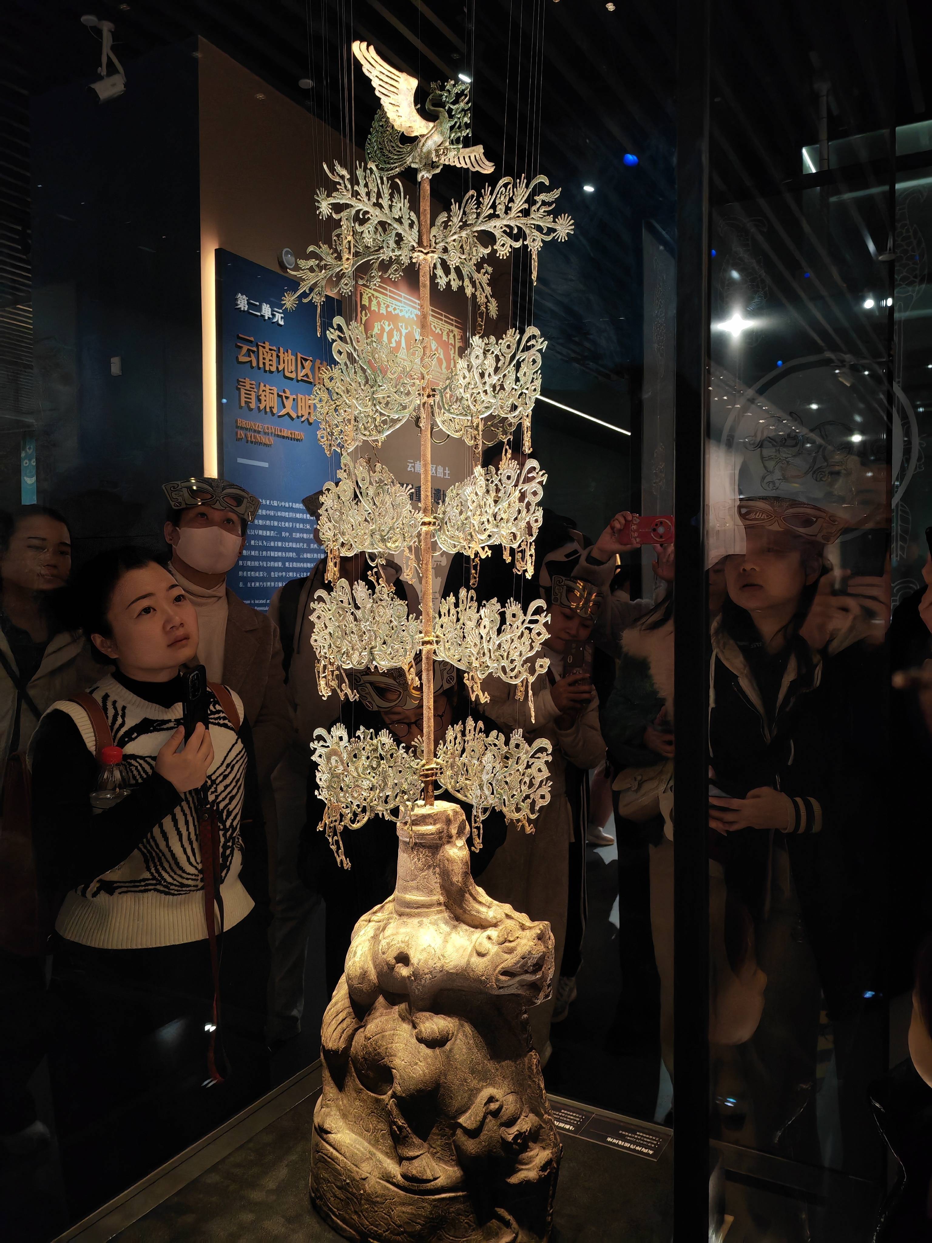 展品东汉马猴摇钱树吸引大量观众围观。新华社记者朱丽莉 摄作为跨年重磅展览,广西站因包含三星堆、金沙遗址等知名文物而备受期待。“我们之前未能去四川观展而遗憾许久,如今乘坐高铁来看展也很便捷。”身着汉服的佛山市民陈莹说,此行专门预约了拍摄服务,为的是留下美好的观展体验和记忆。